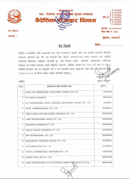 शंकास्पद कागजात पेस गरी जापान पठाउने १४ म्यानपावर कम्पनी निलम्बनमा